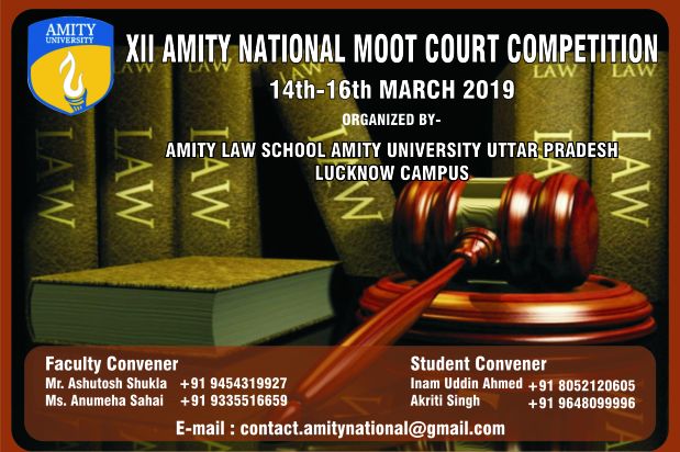 Amity National Moot Court Competition has successfully taken place for a decade and this time Amity is hosting XII Amity National Moot Court Competition, 2019. We would like to cordially invite all the law Colleges/Universities in the territorial boundaries of India. The Moot Problem is themed on the Constitutional Law.